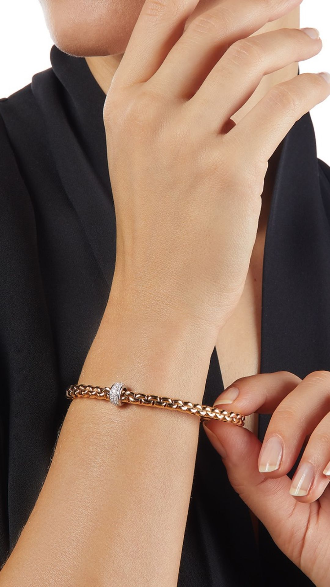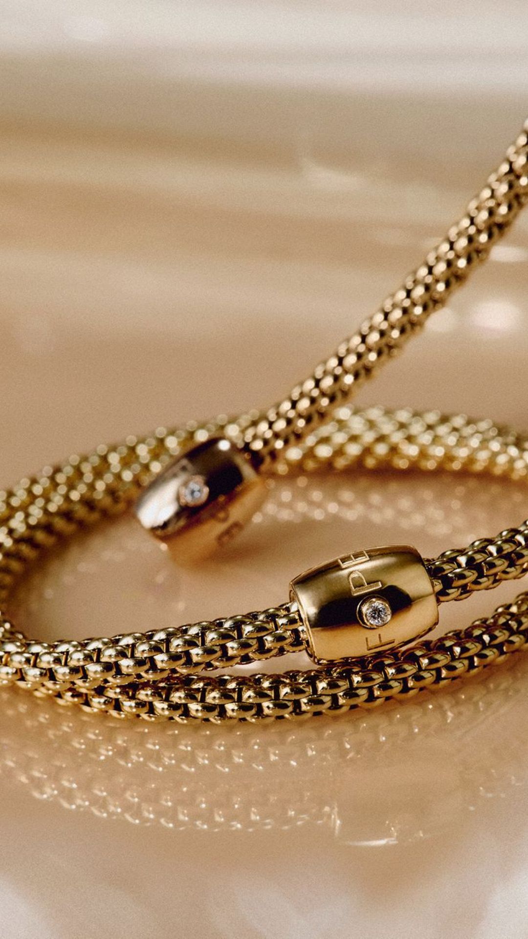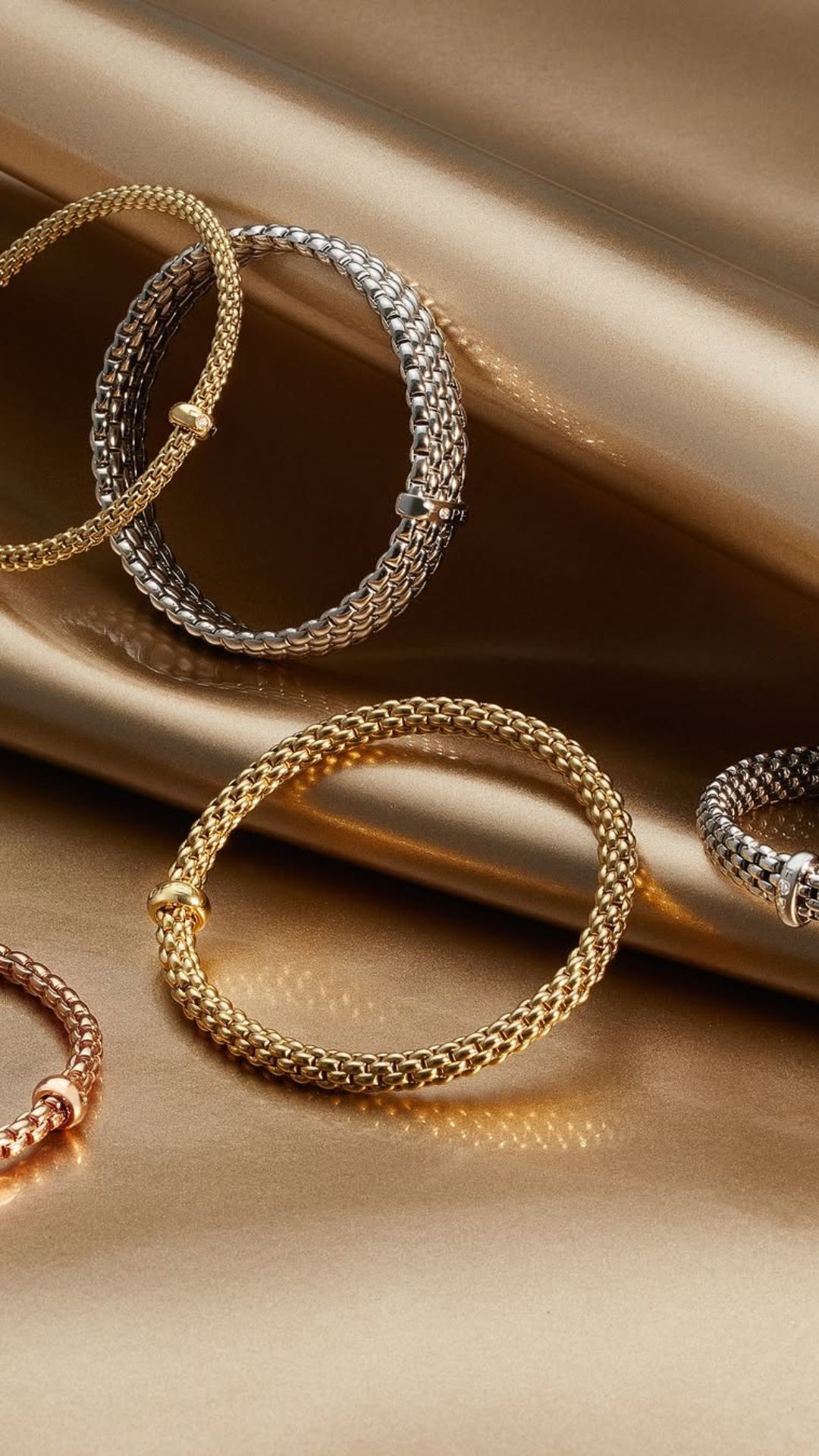 FOPE vervaardigt gouden sieraden, al dan niet versierd met diamanten van uitstekende kwaliteit en een bijzondere schoonheid. De gewoven schakels van 18 karaat goud zijn rekbaar waardoor de juwelen zeer comfortabel dragen. Er komt geen sluiting aan te pas, u schuift deze juwelen zo om de pols. In elke kleur goud zijn de armbanden even mooi!
