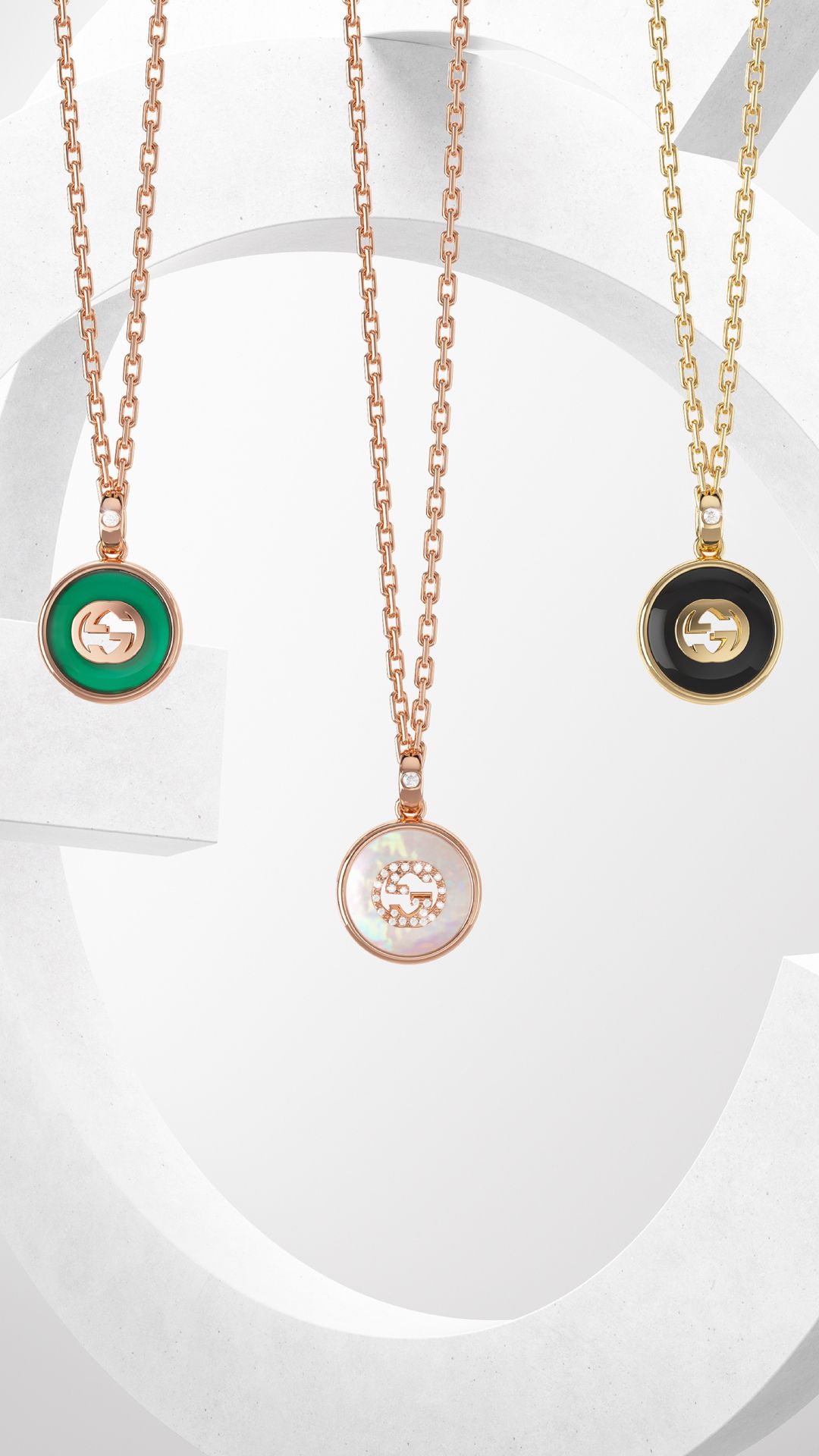 De Gucci “Link to Love” en de “Interlocking” 18-karaat gouden collecties combineren verschillende goudtinten. Beide collecties van Gucci bestaan uit kettingen, armbanden, oorbellen en ringen.