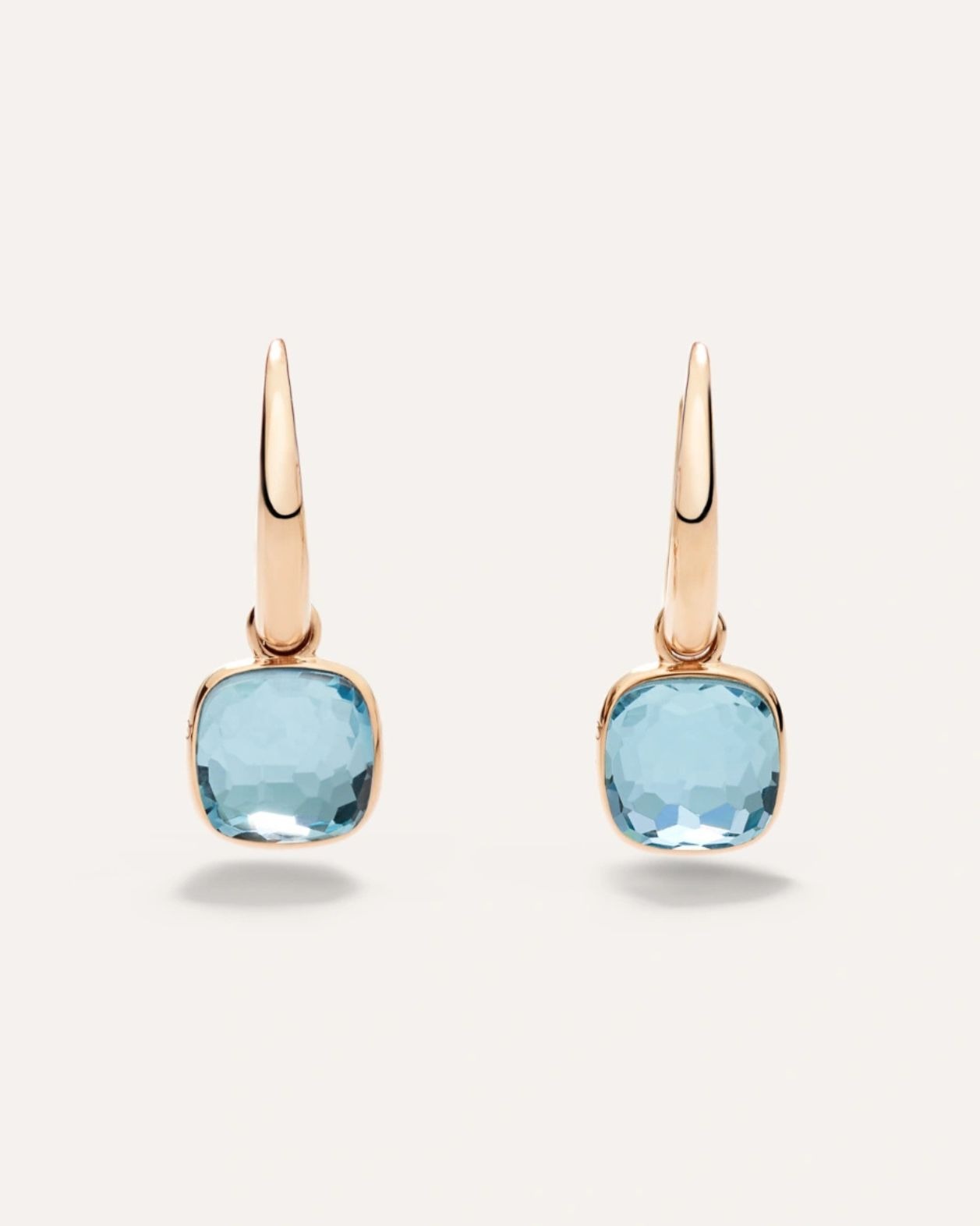 earrings in 18k rose gold with 2 sky blue topazes (≈7.2 cts).